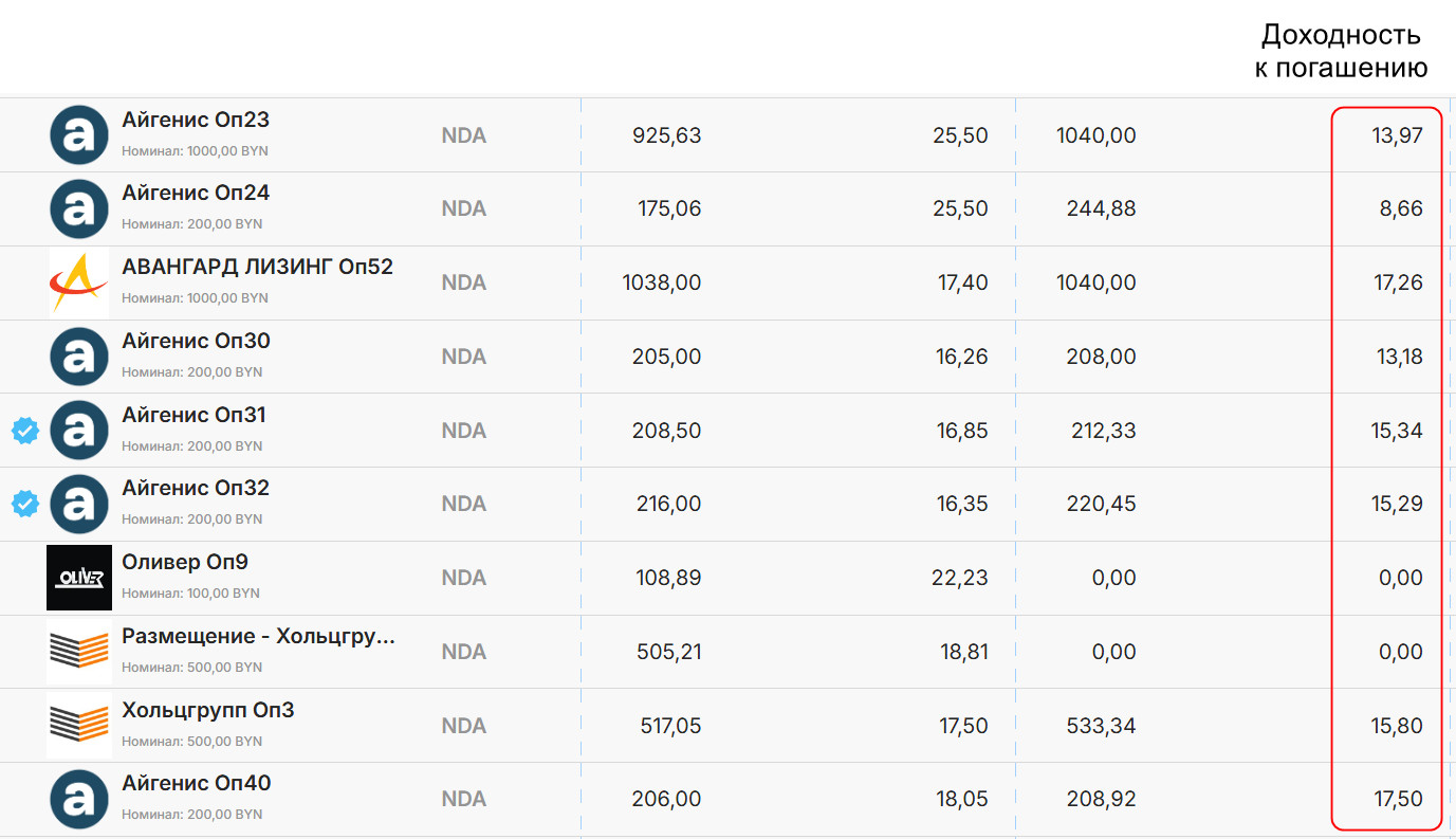Ставки по корпоративным облигациям: до ~17% годовых в BYN